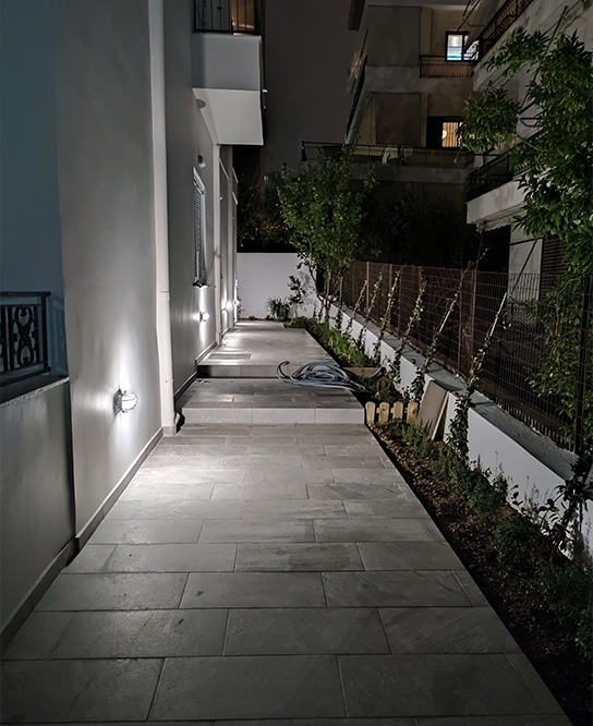 Στο αρχικό στάδιο του έργου πραγματοποιήθηκε ενίσχυση των φερόντων λιθόκτιστων τοιχοποιιών με χρήση οπλισμένου επιχρίσματος, ενώ σε ορισμένα σημεία του φέροντα οργανισμού έγιναν μικρές επεμβάσεις στατικής ενίσχυσης, διασφαλίζοντας την αντοχή και τη στατική επάρκεια του κτιρίου. Παράλληλα, για την προστασία από ανιούσες υγρασίες και τη μακροχρόνια στεγανότητα των τοίχων, κατασκευάστηκε περιμετρικό αποστραγγιστικό σύστημα (drainage). Στη συνέχεια, το διαμέρισμα υποβλήθηκε σε πλήρη ανακαίνιση, με αντικατάσταση όλων των υδραυλικών και ηλεκτρολογικών εγκαταστάσεων και διαμόρφωση σύγχρονων χώρων, δημιουργώντας δύο υπνοδωμάτια, μπάνιο και επιπλέον WC. Η αισθητική αναβάθμιση περιλαμβάνει μοντέρνα υλικά υψηλής ποιότητας και σύγχρονα συστήματα φωτισμού LED, προσφέροντας έναν φωτεινό, άνετο και καλαίσθητο χώρο που συνδυάζει λειτουργικότητα και μοντέρνα γραμμή.